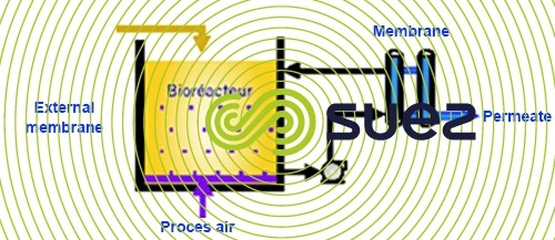 These two technologies, as fixed biomass and free biomass working at a low load, complement each other when combined. Indeed, the quality of treated water is improved due to the development of a specific fixed biomass which requires a high retention time and which acts on pollution which is difficult to biodegrade. The membrane's filtering flow rate is also improved too thanks to reduced concentration levels and the quality of the free biomass in the reactor.