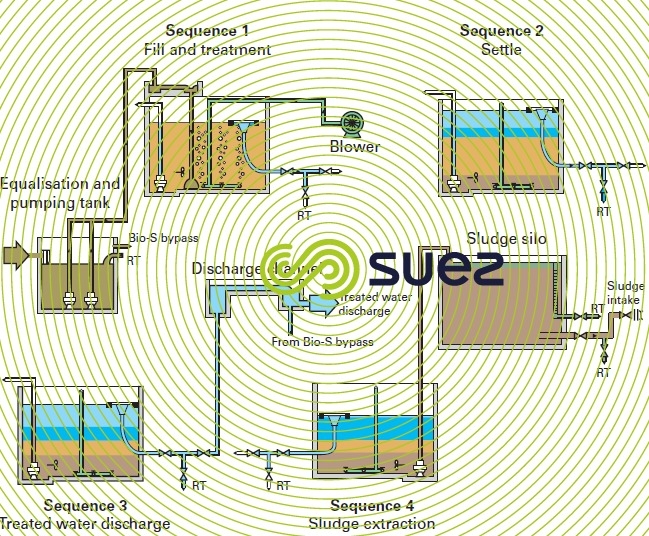 The Bio-S comprises a variable level biological reactor linked to a buffer tank that is used to store the influent and to provide the biological reactor with an intermittent input.