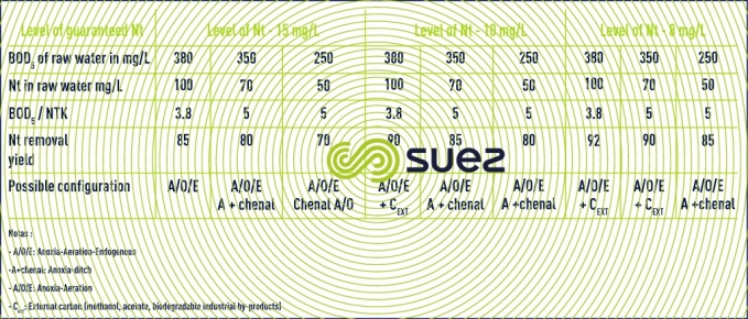 Consequently, this paragraph will only discuss some of the configurations used by SUEZ for removing nitrogen (nitrification and denitrification) or for combined nitrogen and phosphorous removal.