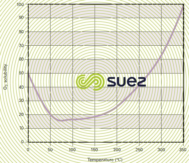 As in the case of any chemical reaction, oxidation kinetics rise with the temperature; however, oxygen solubility also increases by approximately 150 % when the temperature rises from 250 °C to 350 °C (figure 49) and, consequently, the transfer potential increase also causes these reaction kinetics to increase significantly.