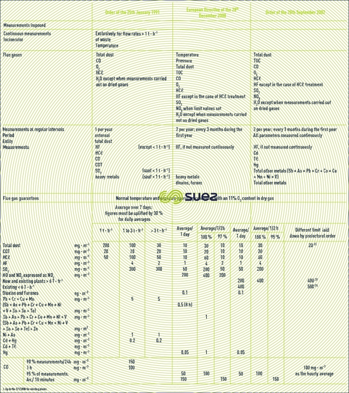 Reading time:Legislation has drawn up specific regulations applicable to units processing sludge or waste by incineration. Table 15 details the developments in statutory technical limitations, incorporating the draft order of the 20/09/2002 that enacts the latest European directive in French law and clearly illustrates the increasing severity of these limitations.