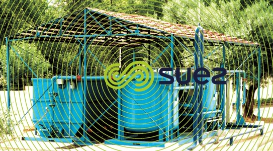 - pressure filtration (v = 8 to 12 m · h–1) through vertical or horizontal filters depending on the model, with air scour and water backwash (‘mutual’ wash: therefore, a backwash water cistern is unnecessary);