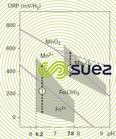 Iron is usually found in its ferric and precipitated form in surface water, often in combination with suspended solids; it will then be eliminated during the clarification stage. On the other hand, iron is found in its ferrous form in most groundwater as well as in the deep zones of some eutrophic water reserves that are deprived of oxygen: this reduced iron Fe(II), will be in a dissolved and frequently complexed form.
