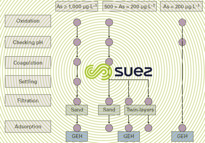 Up until the year 2000, the European standard for drinking water was 50 µg · L–1 of As, a target that was within the reach of clarification or carbonate removal treatment in most cases. Since this standard was modified (1998 European directive 98/83/CE), the limit has been lowered to 10 µg · L–1 of As, and this has led to the development of more specific processes, especially in the case of water that had previously complied and that did not call for any other treatment.