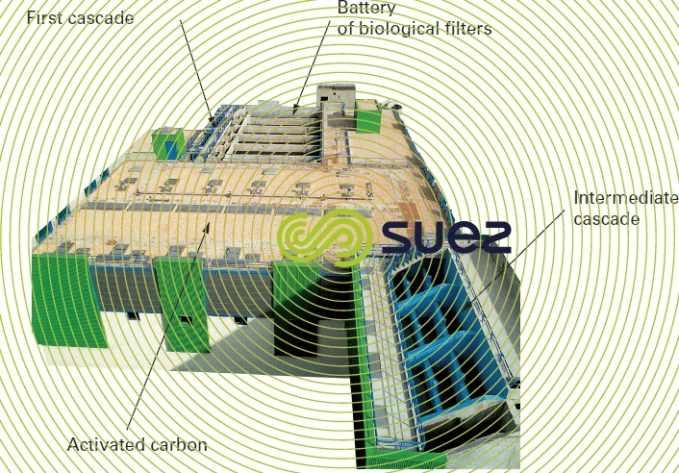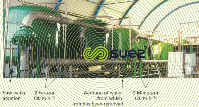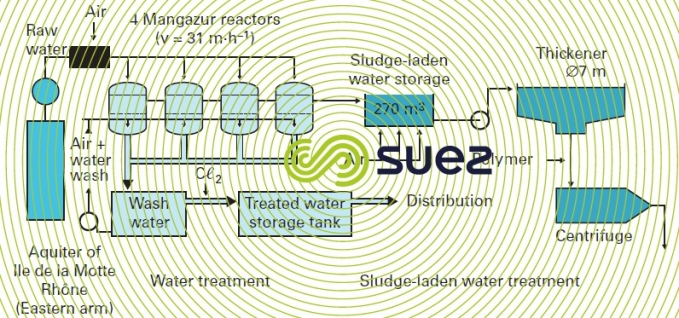 The process and the biological reactor-filter in which it takes place are both called Mangazur. The pressurised plant is the most frequently adopted solution (except in high throughput cases) as in the case of Sorgues (Rhône-Ventoux, France, water board) described by figure 34.