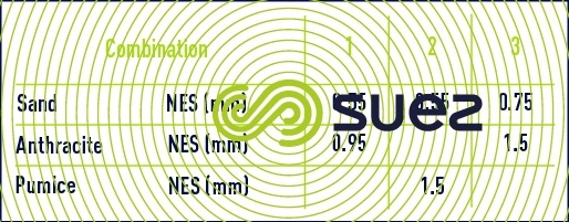 The following table (table 2) gives the characteristics of compatible filtering material combinations applicable to the most common dual-layer filters :