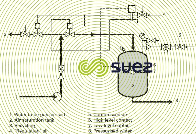 - pressurised water is obtained (see also microbubble flotation ( DAF or FAD ), figure 35):