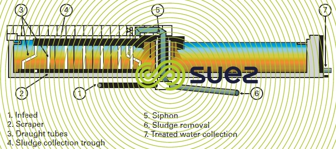 In this type of appliance, the aim is to achieve a more balanced sludge collection from the central area, a system that is better suited to low sludge index (SI or IB in French) sludge.