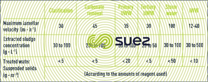 - for a very high velocity solution: the Densadeg 2D100 or 2D TGV on the other hand, is the unit that maximises sedimentation rate. Particularly dedicated to the primary settlement of storm water overflowing from combined systems or separate systems, the Densadeg 2D TGV is used in high speed settling of water (up to 100 m · h–1) but incurs high polymer consumption and produces a lower quality of clarified water (removing approximately 85% of suspended solids).