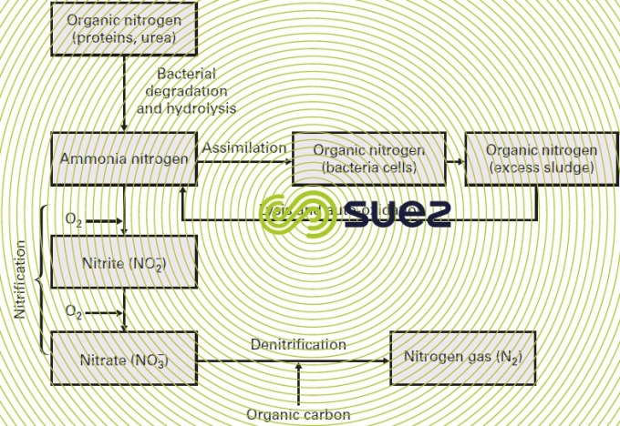 In UWW and in many IWW, nitrogen can be found mainly in its organic form and as ammonia. In a plant designed for nitrogen removal, this removal is the end result of four operations (figure 12).Other ways are under development: