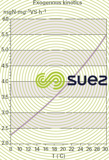 In some applications (influent having a low C/N ratio), we need to check that the capacity of the aerated reactor dictated by sludge age is compatible with maximum nitrification kinetics (at the temperature concerned).