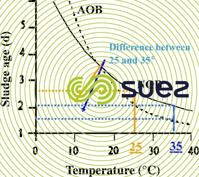 As represented below (figure 17), one of the elements encouraging partial nitrification is that at a high temperature (higher than 18°C), the growth rate of AOB is higher than that of NOB, which limits the development of the latter.