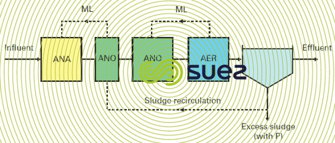 Changes in our understanding of the mechanisms of biological phosphate removal over recent years have led to very different configurations with the twin aim: minimising nitrates added in the anaerobic zone and/or maximisation of volatile fatty acid formation in the anaerobic zone.