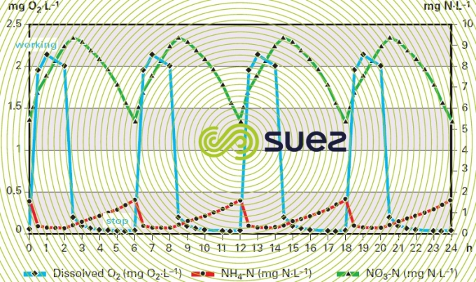 Other approaches aiming to modify the cycle by creating an anaerobic period with feeding at the beginning of the cycle are possible, but make denitrification difficult (which consequently occurs after an aerated phase during which the carbon is consumed with the oxygen). They also make it difficult to optimise dimensioning at a hydraulic level as the duration of the cycle increases the volume to be stored, resulting in high volume fluctuation.