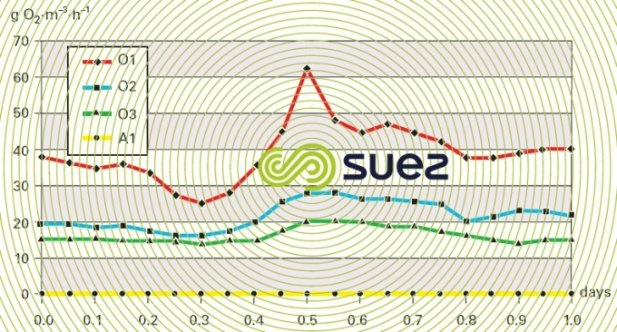 Modelling is also used as a tool for optimizing dimensioning. In fact, modelling allows us to determine optimum dimensioning (volume distribution, oxygen requirement distribution, recirculation rate, feed rate …) for complex configurations (plug flow, stepped feed, nAO …).