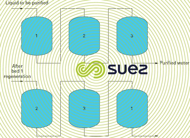 - fixed beds in series :for wastewater treatment, several columns are arranged in series and regenerated by permutation … (figure 73). Thus, a countercurrent extraction system is put in place. The Dual Flow Carbazur filter (see carbazur activated carbon filters GH) en est une variante avec deux cellules ;