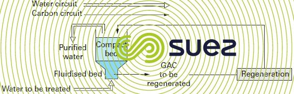 The bacteria biofilm fixed on the GAC will mineralize all or part of the biodegradable fraction of the organic matter adsorbed and this can be regarded as continuous but partial bioregeneration; this system does not necessarily obviate the need for thermal regeneration but does increase useful adsorption capacity with regard to refractory molecules and extends the GAC service life between two heat regenerations.