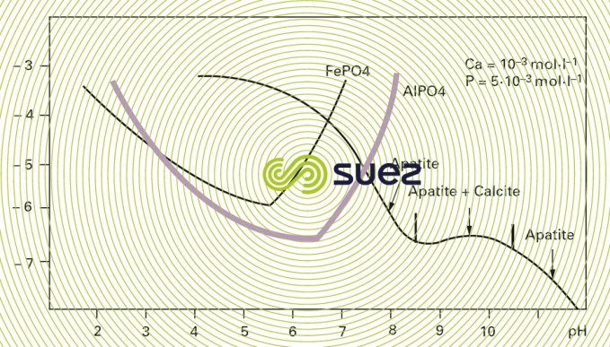 AℓPO4 and FePO4 are low-solubility salts but that will precipitate in their colloidal state. The precipitate is eliminated through flocculation over a metal hydroxide excess (figure 9).