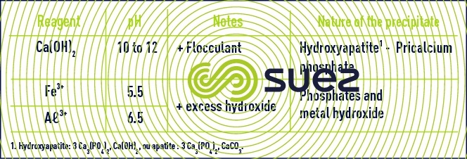 - above pH 10, calcium phosphate co-precipitates with magnesia with residual levels below 1 mg · L–1.