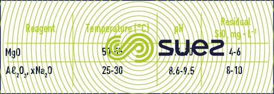Under cold conditions, this amount will vary from 3.2 to 1.8 mg of MgO per mg of absobed SiO2 for an initial concentration of 20 to 40 mg.L-1.