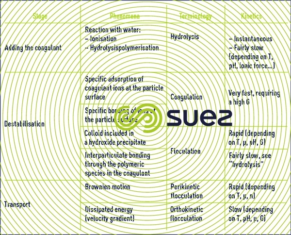 Table 4 summarises the various successive or simultaneous phases leading to the formation of floc from a colloidal suspension.