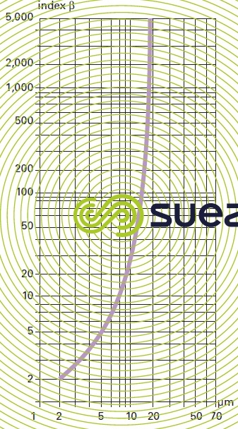 An electronic laser counter is used to carry out the count. Figure 37 (β based on the particle diameter) provides an example of the result obtained on a test filter. According to the industry, the target index b can be "5 000/1" or "2 000/1" or "200/1".