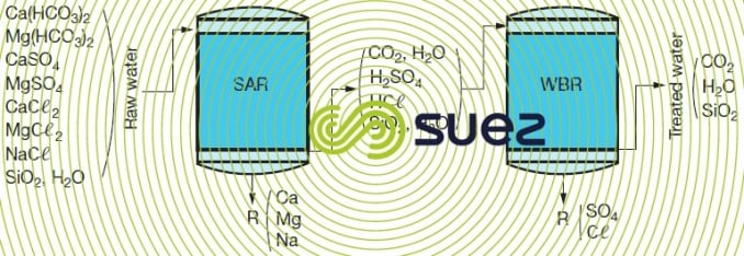 However, this system is used less and less. It has been overtaken by mixed bed exchangers that produce a better quality (see above).