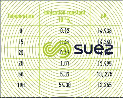 The dissociation constant (or ionic product) for water is approximately 10-14 (mol · L-1)2 at 25°C. It varies depending on the temperature (see table 7).