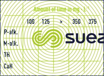A first test is carried out without coagulant to establish the amount of lime required while injecting 10 g per litre of powdered CaCO3 (granulometry 50 µm). Stir for 5 minutes prior to settling and filtering through a slow filtration paper filter. Titer the filtered water and compute the results in a table (table 4).