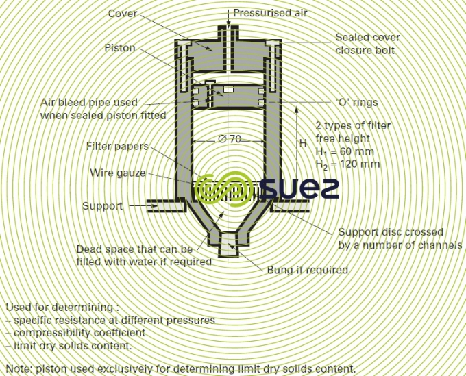 - allow the filtrate to flow and record its volume V0 (approximately 10 % of the volume of the sludge to be filtered);